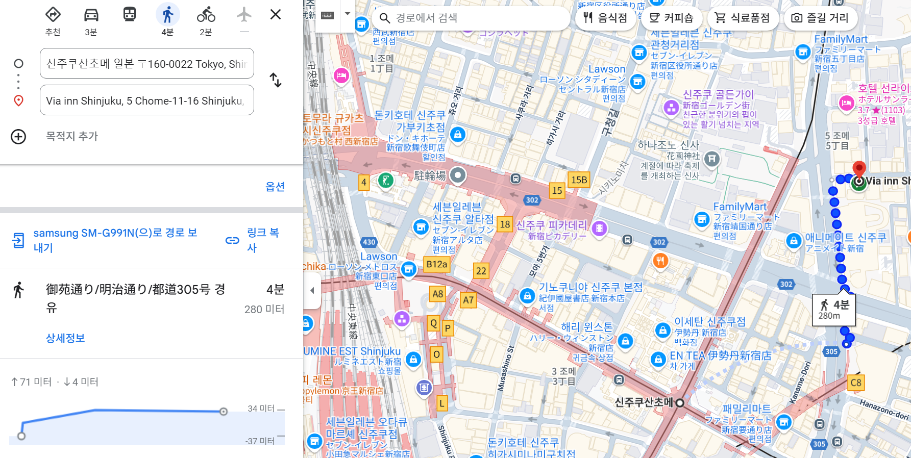 신주쿠역까지도 걸어서 구글맵 기준 12분이다.